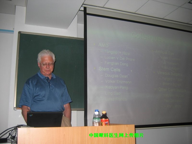7-24日北京协和医院眼科、同仁医院眼科、北京医院眼科在北京协和医院教学楼联合举办眼科新进展及疑难病例讨论会。与会者来自北京各家医院的眼科医生150余人。讨论会在热烈的气氛中开始。首先由美国Louisville大学眼视光学中心主任 Henry J Kaplan, MD进行骨髓干细胞移植治疗年龄相关性黄斑变性、23G玻璃体切除、人工眼等最新研究进展的精彩讲演。之后是3院联合举行的疑难病例讨论会。北京协和医院的董方田主任、北京医院的戴虹主任、同仁医院的刘宁朴主任主持会议。会议就视网膜大动脉瘤、年龄相关性黄斑变性、PCV、梅毒合并HIV性全葡萄膜炎、Vasalva视网膜病变等疾病的诊断和治疗进行讨论和研究。与会者一致认为采用疑难病例讨论的形式对于疾病的认识和理解具有独特的效果,受益颇丰。下一次的疑难病例讨论会将在北京医院眼科举行,并将长期坚持下去。