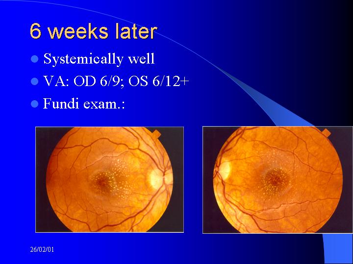 Referred to AKH Ophthalmology service on 10/08/00 for funds examination.