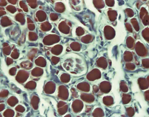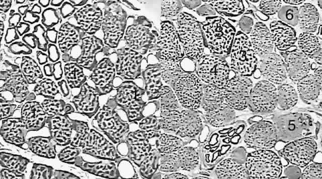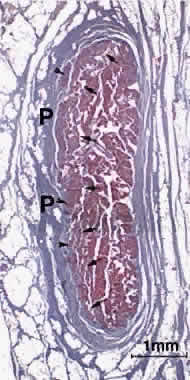 tendon (see Fig. 5, lower center), and enters a dense connective tissue sheath as it penetrates