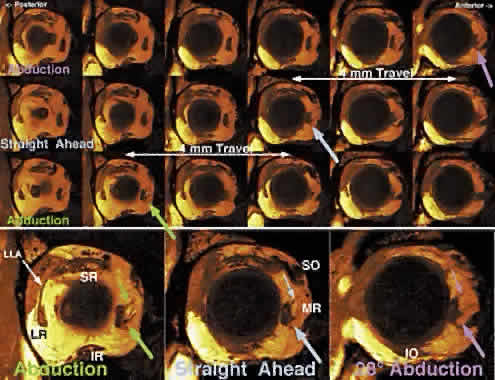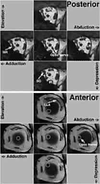 is seen to shift relative to the orbit. Posteriorly in the orbit (see Fig. 8, top), the EOMs also maintain stable paths, but the cross sections of