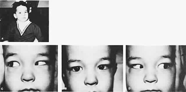 in a compensatory horizontal face position toward the palsied eye (Fig. 11). Rapid forced dextroversion and levoversion movements in unilateral sixth