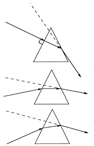 simply change light's direction. Figure 76 shows that prisms deviate light toward the base, making an object appear
