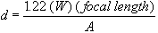 Where d = the diameter of the Airy disk, W = the wavelength of the light (about 0.55 μm), and A = the diameter of the aperture stop. For a given lens, the diameter of the Airy disk increases as the aperture decreases. Consider two lenses identical in power, both producing (geometrically) stigmatic images, but one with a smaller diameter. The smaller-diameter lens gives a poorer image because of greater diffraction (Fig. 57).