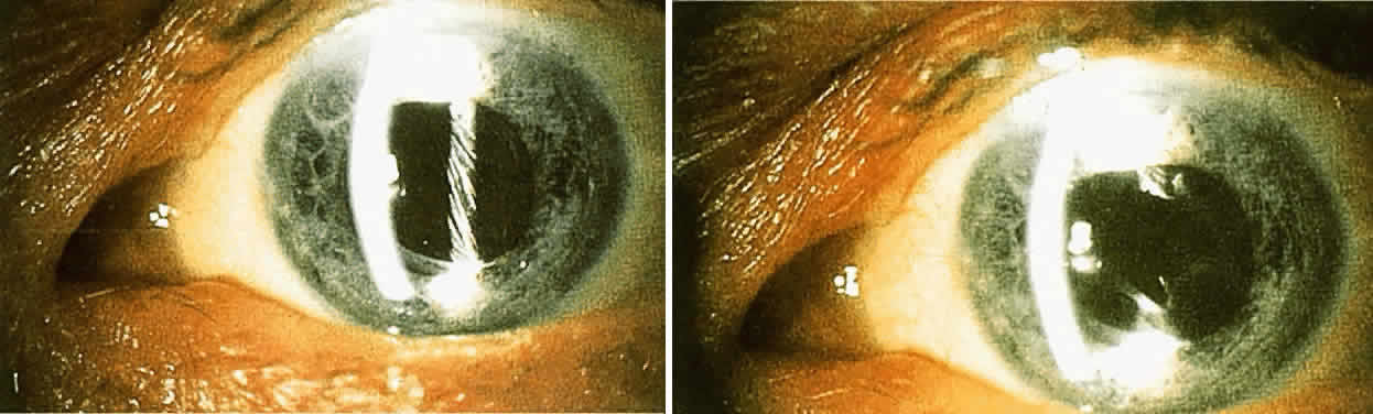 Surgical Methods When these methods fail to help a patient who has glare disability, surgical removal of the scattering lesion should be considered. Significant corneal edema or permanent corneal scars can be treated by a corneal transplant. A significant cataract should be extracted. Finally, an opaque lens capsule after cataract surgery, which produces glare symptoms or reduced contrast sensitivity, requires a capsulotomy. Because the glare disability is proportional to the ratio of the area of capsule opening over the area of capsule opacity, the size of the capsulotomy must be considered. The size of the optimal capsulotomy equals the size of the pupil (Fig. 11).18