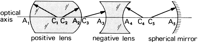 of lens elements shown in Figure 11a, can be determined readily by reducing the system to six cardinal points. Two