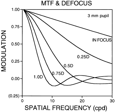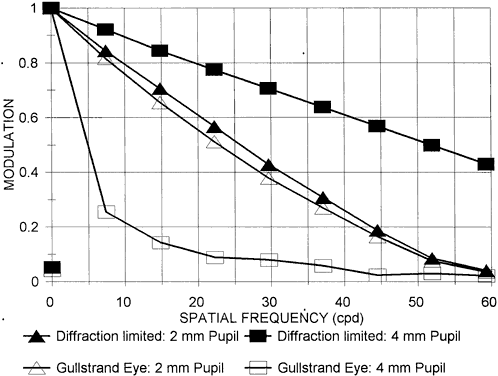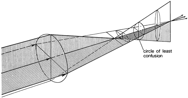 points, thus blurring the image, as illustrated in Figure 4. A 2-mm maximum pupil diameter for the eye satisfies paraxial assumptions.