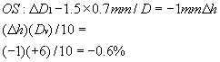 and increase the center thickness on the left lens where the magnification is required. If we increase to 3.3-mm center thickness, Ms becomes 5.5 × 3.3/15 = 1.2%. Comparing this with the right lens, we now have 0.4% magnification on the left eye. We need 0.6% more. However, first note the change in Mp (power factor). Line 2 is the correction in Mp for the change in t: