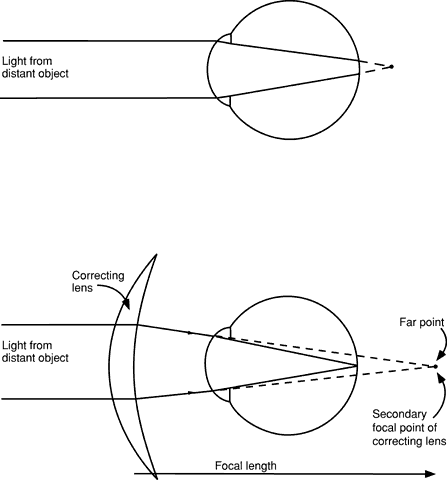 | As illustrated in Figures 1 and 2, the lens that corrects a refractive error images parallel light rays