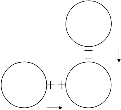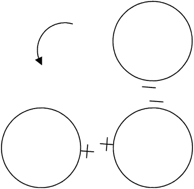 Rigid contact lenses have a tendency to move along the steeper meridian. Thus, with-the-rule astigmatism is good for rigid contact lens fitting because the lens moves up and down with the blinking of the upper lid; against-the-rule astigmatism is not as good because the lens tends to move side to side with each blink. Usually, corneal astigmatism is with-the-rule, hence the name. Thus far, we have considered only corneal astigmatism, which is measured with a keratometer. In clinical practice, we also measure refractive astigmatism. Whereas keratometry measures only corneal astigmatism, refraction measures a combination of both corneal and residual astigmatism. Residual astigmatism also is called lenticular astigmatism because it is believed to originate from a tilted crystalline lens. We decide which contact lens to fit based on how well the refractive astigmatism and the keratometric astigmatism match. Following is an example of matching astigmatism, where the corneal shape is responsible for the entire refractive astigmatism; a simple rigid lens would work well because a rigid lens cancels out corneal astigmatism: