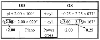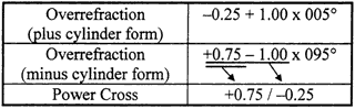 To calculate the power crosses for each eye, the overrefractions first were converted to minus cylinder notation: