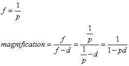 Because the power p of a converging lens is the reciprocal of the focal length,