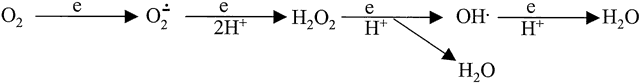 in almost all experimental cataracts studied.12 SOURCES OF OXIDATIVE STRESS To probe the role of oxidation in cataractogenesis, one must first consider the environment of the lens in terms of both its particular exposure to oxidative stresses and the array of mechanisms that are present to combat or neutralize such stress. In the normal lens there is clearly a balance between these two opposing forces; in many cataracts, it appears that the balance has been lost and the antioxidative defenses have been overwhelmed. The lens is an organ uniquely vulnerable to oxidative damage because it is exposed to chronic oxidative stress from multiple sources and has limited ability to renew or repair damaged molecules. The major oxidants believed to be involved in creating oxidative stress on the lens are the activated species of oxygen. These include the one-electron reduction products of molecular oxygen (Fig. 3): superoxide anion (O-ÞB32), hydrogen peroxide (H2O2), and the hydroxyl radical (OHÞB3), and an activated species of molecular oxygen called singlet oxygen (1O2). The superoxide anion is a free radical formed directly from molecular oxygen via one-electron reduction. It can be formed in a variety of ways, including as an intermediate in numerous metabolic reactions. It is not a strong oxidant but is quite reactive, usually dismutating spontaneously, or more efficiently when catalyzed by the enzyme superoxide dismutase (SOD), to produce H2O2. H2O2 is a stable product capable of diffusing into cells. Although it is not very reactive itself, in the presence of reduced transition metal ions (e.g., iron or copper), it can be converted into the extremely reactive and powerful oxidant OHÞB3 via the Fenton reaction. Two potential sources of OHÞB3 or related, highly reactive species in the lens have received much attention. The first of these is photo-oxidation, because the lens is necessarily extensively exposed to sunlight, which includes significant UV components. Although the cornea removes that part of the spectrum below about 295 nm, some UV-B and most of the UV-A reaches the lens. The fact that much of this UV radiation is absorbed within the lens raises the possibility of either direct photo-oxidation of the absorbing molecules or generation of activated oxygen species. This latter process, termed photosensitized oxidation, usually involves the triplet state of the sensitizer and can proceed via two mechanisms. In the type I reaction, the sensitizer triplet reacts to produce free radical species, including O-ÞB32, which can then give rise to H2O2 and OHÞB3. Alternatively, in a type II process the triplet sensitizer transfers energy directly to molecular O2 to produce singlet oxygen. In either case, the activated species of oxygen produced are capable of oxidizing certain protein side chains, nucleic acids, and lipids. Epidemiologic studies have linked increased exposure to sunlight to a higher risk of aging-related cataract. The action spectrum for this effect is still controversial. The most authoritative epidemiologic study, done with a group of Chesapeake Bay watermen, found a positive association of UV-B exposure (290 to 320 nm) with cortical cataract, but no association of UV-A exposure (320 to 400 nm) with cataract.10 The relation of UV-B exposure with cortical cataract is consistent with various animal studies as well. That UV-A may also play a role in cataract, despite epidemiologic evidence to the contrary, remains an attractive theory to many investigators.13 The human lens develops, as a function of age, yellow pigments associated with the lens proteins, particularly in the lens nucleus. It has been demonstrated that these pigments strongly absorb UV-A and that in vitro exposure of pigmented proteins from human lenses to UV-A can generate reactive oxygen species, including singlet oxygen.14,15 Because oxidative damage to lens proteins is most pronounced in the lens nucleus and because UV-B would be unlikely to reach the lens nucleus, whereas UV-A is absorbed there in large quantities, it is perhaps premature to ascribe all photo-oxidative damage in the lens to UV-B. A second potential source of oxidative stress on the lens that has received much attention relates to the level of H2O2 endogenously present in the eyes of certain species, including humans. It has long been believed that H2O2 levels in aqueous humor are much higher than those in plasma or in tissues outside the eye. Concentrations in the 20- to 30-μm range have been reported from several laboratories using different analytic methods.11 Further, it has been reported that the H2O2 level of aqueous from cataract patients may be substantially increased.16 However, the findings of a recent study suggested that levels of H2O2 were greatly overestimated in many earlier studies because of interference with the assay by the high concentration of ascorbate in aqueous.17 The absolute level of H2O2 in the eye remains a controversial and important issue, but there is no doubt that this compound can pose a significant hazard for the lens, as has been shown in numerous studies using intact lenses and lens constituents in vitro.18,19 PROTECTION FROM OXIDATIVE STRESS To counteract this chronic oxidative stress, the lens has a variety of defense mechanisms. First, the lens is nonvascular and receives all its nutrients and other needs by means of diffusion from the surrounding fluids. The lack of blood vessels eliminates potential light-scattering elements in the lens and also reduces oxygen tension in and around the lens, thereby lowering the potential for generation of reactive oxygen species. The oxygen tension at the anterior surface of the lens is estimated to be 10 mm, in contrast with the 160 mm at the external surface of the cornea. Second, the lens has an unusually high concentration of glutathione (GSH), a thiol-containing tripeptide that can quench free radicals, detoxify H2O2 and organic peroxides through its role as 