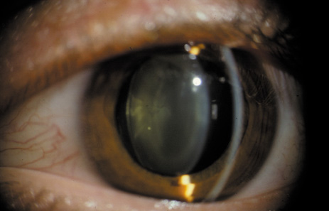 Cataracts can occur secondary to trauma to the lens.61 The morphologic characteristics differ between cataracts caused by blunt trauma and cataracts secondary to penetrating trauma. Cataracts secondary to blunt trauma often have a rosette-shaped