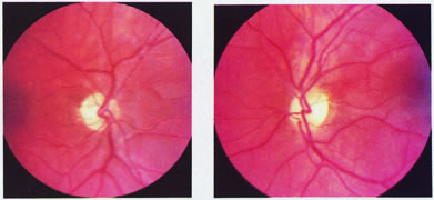 Trauma is another frequent cause of visual cortical lesions. Direct injury to visual areas occurs from open head injury with penetration of the skull from falls, falling objects, knives, bullets, or blows. Closed head injury may involve rapid acceleration and deceleration of the head, as in a fall or when the head strikes the dashboard in a car crash. The brain continues forward because of inertia, and then moves back in the opposite direction. A coup injury produces bruising on the side of the impact and a contrecoup injury on the opposite side. Thus trauma to visual areas may follow a blow to either the occiput or the forehead. Both cerebrovascular and traumatic brain injury can indirectly injure visual areas through cerebral edema. Because the skull is a closed compartment, edema can result in herniation syndromes. Tentorial herniation of the uncus may compress the posterior cerebral arteries, infarcting one or both occipital lobes, with severe and permanent visual deficits in survivors. There are many other causes of cerebral visual loss (see Table 1). Vision impairment is frequent in Alzheimer's disease, the most common cause of dementia in older adults, and can even be the presenting complaint in patients with the visual variant of this disorder. This may perplex the eye specialist unaware of this manifestation of Alzheimer's disease and who has few tools for measuring the relevant visuoperceptual and cognitive impairments. Creutzfeldt-Jakob disease, a rare, rapidly progressive, incurable disorder, may likewise present with visual complaints prior to dementia, myoclonus, and the development of triphasic waves on electroencephalogram (EEG). In these cases, there are concerns about transmitting the infectious agent to other patients through inadequate sterilization of instruments. Finally, in addition to increased incidence of pathologic impairments of the eye and brain in elderly persons, visual performance is also reduced through normal aging. Reduction in the speed of neural processing in the central nervous system results in cognitive slowing, reduced attention capacity, and shrinkage of the useful field of view despite apparently normal visual fields on conventional perimetry. Such visual impairment can affect daily activities such as reading, route finding, face recognition, and driving, and may increase the risk of injury from car crashes and hip fractures. |