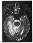 The pathogenesis of transient cerebral blindness varies with the cause. Vasospasm is blamed in head trauma,96 eclampsia,97,98 methamphetamine abuse,99 and meningitis, which also may induce vasculitis.77,100 Circumstantial evidence for vasospasm includes a correlation of traumatic cerebral blindness with prior migraine.86 Angiographic contrast agents may cause breakdown of the blood–brain barrier under osmolar stress and subsequent neurotoxic effects,95 providing a rationale for dexamethasone and mannitol as specific therapy in this context. Pediatric cerebral blindness is not uncommon. Children may not complain of visual loss but present with agitation, disorientation, and unsteadiness.73,96,101 During tests of vision they may not respond or may confabulate answers.101,102 Further observation shows that they do not fix, follow, or make saccades to objects, blink to threat, or show optokinetic responses.70,73,102 There can be an associated strabismus. Major causes include head trauma, bacterial meningitis,76,77,100,102 and hypoxia from cardiac or respiratory arrest.102 Other causes include encephalitis, as well as metabolic83,102,103 and toxic99 conditions (Table 3). Seizures are common, and mental retardation is a frequent complication in children with cerebral blindness after meningitis. TABLE 3. Causes of Pediatric Cerebral Blindness