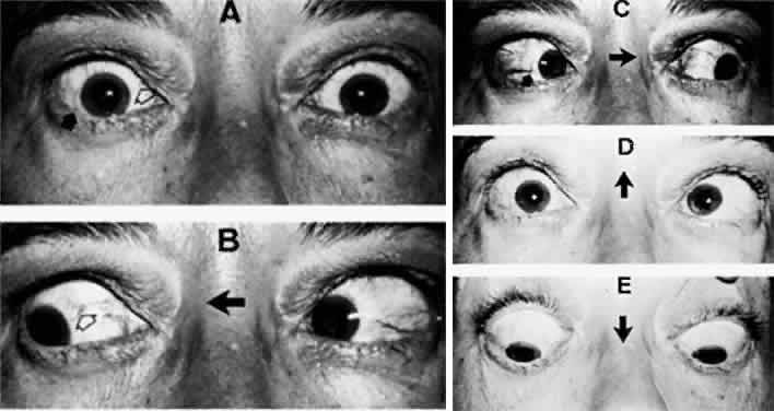stages. Downward gaze is most affected, and victims complain of difficulty
