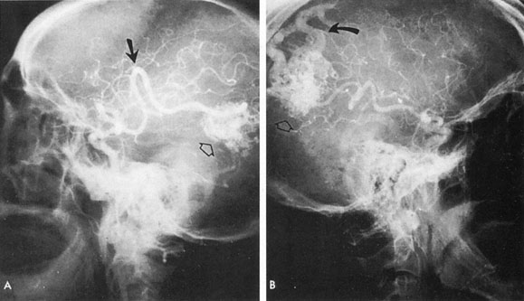 mass effect, as well as in the more dramatic acute hemorrhagic episodes. Vascular defects present from birth may suddenly become manifest in adult life as an oculomotor palsy caused by an aneurysm at the origin of the posterior communicating artery or as an homoymous visual field defect from occipital lobe arteriovenous malformation. Acquired vascular lesions may become evident immediately following trauma or after some interval, as in the case of carotid–cavernous sinus fistulas. |