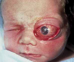 than normal, and has an attached cystic mass at birth.25,26 The cyst may be smaller or larger than the eye; its appearance is dependent