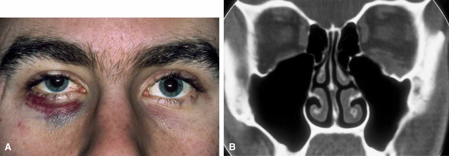 fibrosis.31,32 In the adult, it is common to elicit a history of recurring sinusitis, trauma, or