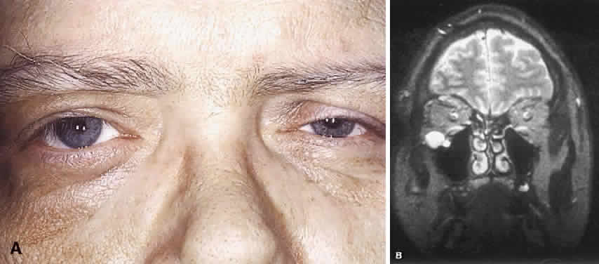 the orbit are less likely to cause pain than proptosis. Rarely, these