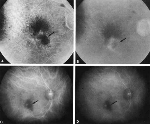 through all phases of the angiogram (Fig. 14). Like melanomas, speckled hyperfluorescence may sometimes be seen
