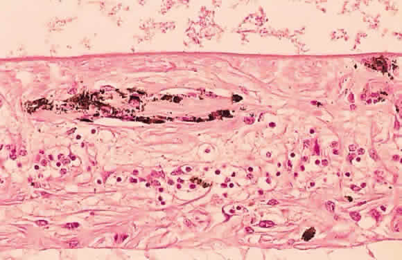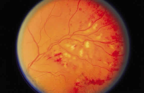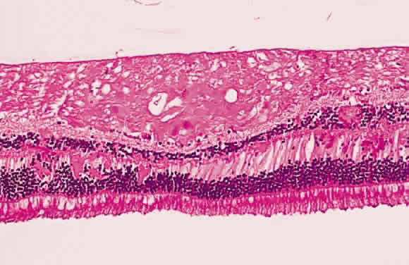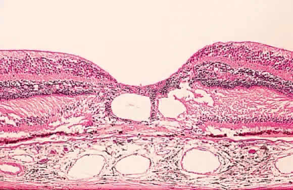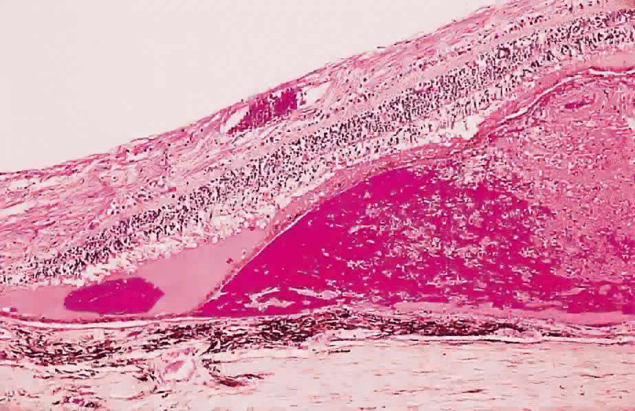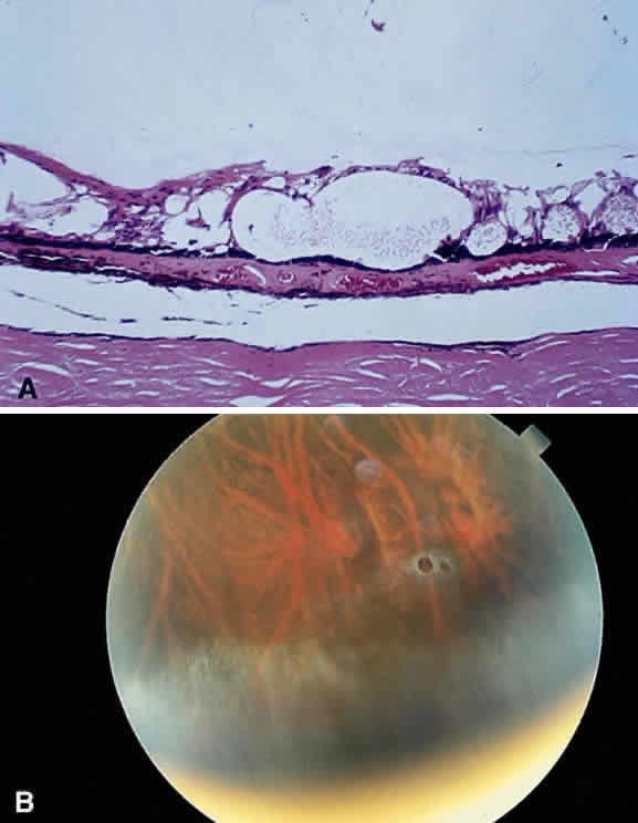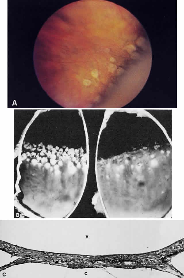 to the ampullae of the vortex veins. Whereas there are lesions of
