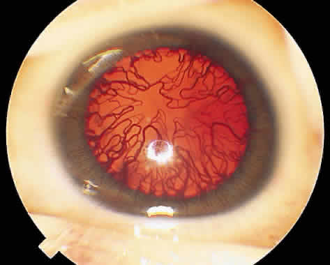 reflex must be considered. The clinical setting often provides the diagnosis. Infants with ROP typically were premature and of low birth weight with a history of variable oxygen exposure. There is no hereditary pattern. Familial exudative vitreoretinopathy usually is an autosomal dominant peripheral fundus disorder that is asymptomatic in 80% of cases. It also may be inherited in an X-linked fashion, in which case Norrie's disease must be included in the differential diagnosis, since one mutation in the Norrie disease protein gene (NDA) may lead to confusion with FEVR. Peripheral nonvascularization with straightening and anastomosis of the vessels occurs in a fibrillar pattern at the junction between perfused and nonperfused retina, and there may be dragging of the retina. Regression, such as occurs in ROP, typically does not occur in familial exudative vitreoretinopathy. The peripheral retina remains avascular, but progression to more severe changes such as tractional retinal detachment and neovascular glaucoma may occur.124 Patients with familial exudative vitreoretinopathy are normally full term at birth with no history of respiratory difficulties and supplemental oxygen exposure. If familial exudative vitreoretinopathy is suspected in an older child or adult, examination of asymptomatic family members often reveals peripheral fundus lesions. Incontinentia pigmenti (Bloch-Sulzberger syndrome) is an X-linked dominant condition that may simulate ROP in female infants. The disease is lethal in male infants. In the first month, infants may have dilated, tortuous retinal vessels with peripheral retinal nonperfusion. Hemorrhage may be present at the junction of vascularized and avascularized retina. Other ocular anomalies include strabismus, cataract, myopia, nystagmus, blue sclera, and corneal opacities. Vesicular skin eruptions, which later turn into depigmented areas, are seen. Central nervous system disorders include seizures, spastic paralysis, mental retardation, and cortical blindness. Patients with X-linked retinoschisis may develop a dragged retina in the first year of life. The dragging may be associated with vitreous hemorrhage. Examination of the fellow eye and electroretinography (showing a decreased b wave) are helpful in making the diagnosis. Family history frequently is positive. The differential diagnosis of stage 5 ROP is that of a white pupillary reflex (leukocoria). This includes congenital cataract, fetal vasculature, retinoblastoma, ocular toxocariasis, intermediate uveitis, Coats' disease, advanced X-linked retinoschisis, and vitreous hemorrhage. |