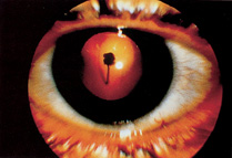 this entity.98–100 In 1995, Shields and associates characterized 103 patients with these acquired retinal hemangiomas and recommended using the term vasoproliferative retinal tumors to describe these lesions.101,102 The lesions can be unilateral or bilateral and are characterized as either idiopathic (primary) or secondary to preexisting ocular disease. Associated preexisting ocular disorders include intermediate uveitis, retinitis pigmentosa, toxoplasmosis, toxocariasis, his-toplasmosis, retinochoroidal coloboma, traumatic chorioretinopathy, familial exudative vitreoretinopathy, Coats' disease, status postretinal detachment repair, and cryotherapy.100,102 Lesions usually are solitary but can be multiple or diffusely involve the eye and have a propensity to occur in the inferior peripheral retina. Associated ocular findings that may impair vision include intraretinal exudation, exudative retinal detachment, vitreous cells, vitreous hemorrhage, retinal pigment epithelial hyperplasia, premacular fibrosis, and macular edema. The macular changes may be remote from the vasoproliferative tumor. IVFA reveals rapid filling of the vasoproliferative tumor through an undilated or minimally dilated retinal arteriole in the arterial phase and staining of the lesion in the late phases.102 Ultrasonography reveals medium to high internal reflectivity and acoustic solidity without choroidal excavation.102 The pathogenesis of vasoproliferative retinal tumors is not clear. It has been hypothesized that these lesions represent exuberant vascularization of the retina or retinal pigment epithelium or reactive gliosis.101,102 Histopathologic study in one case demonstrated retinal gliosis, dilated ectatic retinal vessels, and a preretinal neovascular membrane.103 Management of these lesions has included observation, cryotherapy, laser photocoagulation, and plaque radiotherapy, depending on the size and location of the lesion and the associated complications.97,102,104 |