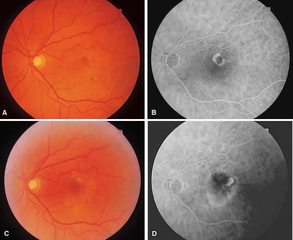 a recurrence of central serous retinopathy.274,275 Central serous retinopathy may be more common in whites, Hispanics, and
