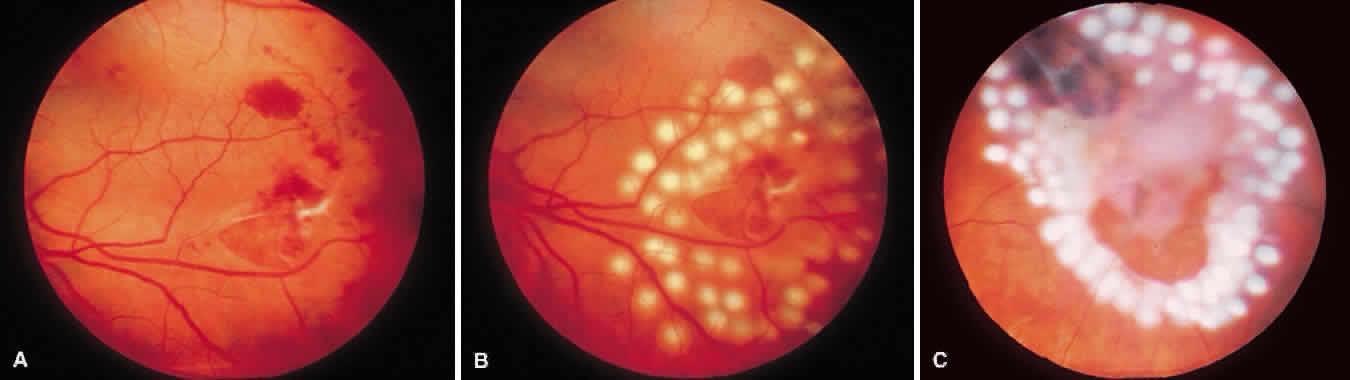 | Laser photocoagulation, administered with either a slit-lamp or indirect