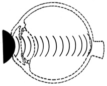 | Blunt trauma causes ocular damage by the coup mechanism, by the contrecoup