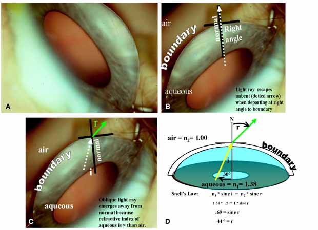 | UNDERSTAND WHY THE ANTERIOR CHAMBER ANGLE CANNOT BE SEEN ROUTINELY: GEOMETRIC OPTICS AND SNELL'S LAW ARE THE ANSWER |