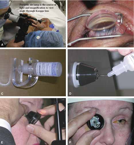These new clinical modalities inspire a modern-day definition of gonioscopy, namely: the evaluation and management of the eye based on the visualization of the anterior chamber angle constitute the field of gonioscopy. Gonioscopy currently consists of direct and indirect gonioscopic techniques performed with variable-sized gonioprisms, goniolenses, and viewing devices. Ophthalmic endoscopy is a relatively new technique that allows the surgeon to view the chamber angle directly during surgery. Imaging of the chamber angle with UBM and photography adds valuable angle information that is correlated with gonioscopy. Ophthalmologists who take advantage of these techniques and devices provide superior care through a rapid assessment of the angle situation. The focus of this chapter is classic gonioscopy, the benefits of which are currently the greatest for practitioners on a day-to-day clinical basis. The ultimate goal of gonioscopy is to preserve or improve vision through the systematic evaluation and management of the anterior chamber angle. This requires the skill necessary to use a variety of instruments in order to accomplish a specific gonioscopic task (Fig. 1). In addition, the accurate recording and classification of visualized structures is imperative to document angle structures and note their changes over the lifetime of the patient. Physicians who integrate gonioscopy into their practice are able to examine, evaluate, document, and appreciate the appearance of the normal angle and its immense variability. A thorough understanding of normal is imperative in order to recognize and treat angle pathology.