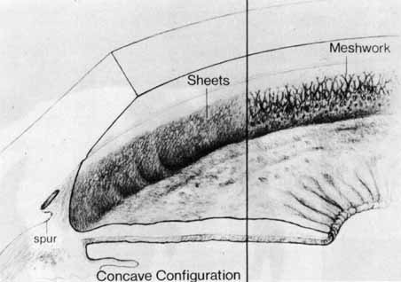 glaucoma. It may involve one or more of the angle structures: the trabecular