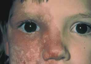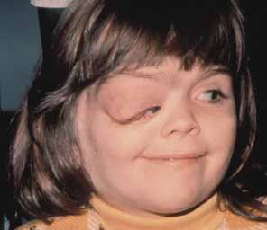 Glaucoma more often occurs when the ipsilateral facial hemangioma involves the lids and conjunctiva (Fig. 15). Glaucoma may occur in infancy, late childhood, or young adulthood. The glaucoma that occurs in infancy looks and behaves similar to glaucoma associated with isolated trabeculodysgenesis and responds well to goniotomy. The glaucoma that appears later in life is probably related to elevated episcleral venous pressure from arteriovenous fistulas.37 In older children, medical therapy should be attempted first. However, if this is not successful, trabeculotomy or trabeculectomy should be considered.