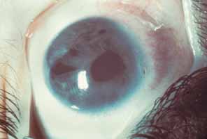 membrane, epithelial and stromal edema, and corneal clouding. The iris