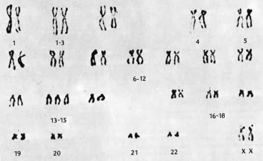 CHROMOSOMAL ABNORMALITIES Congenital glaucoma has been associated with chromosomal abnormalities of 17 different autosomes.51 They include trisomy 21, trisomy 13–15 (Fig. 23), trisomy 17–18, Turner's syndrome, and trisomy 20. These chromosomal abnormalities are associated with multiple systemic and ocular abnormalities. Appropriate surgical or medical therapy for glaucoma should be administered according to the individual case.