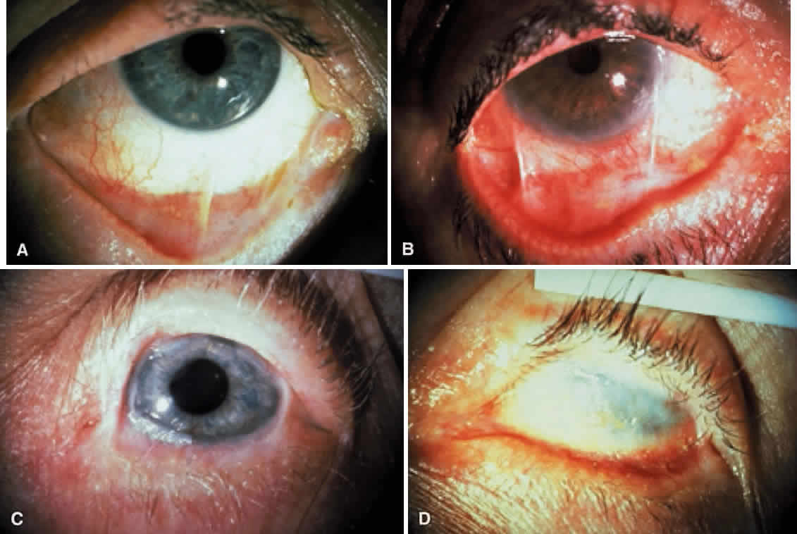 membranes and skin, with a tendency for scar formation.1 Ocular involvement is characterized by progressive conjunctival shrinkage, symblepharon, entropion with trichiasis, dry eye, and reduced vision