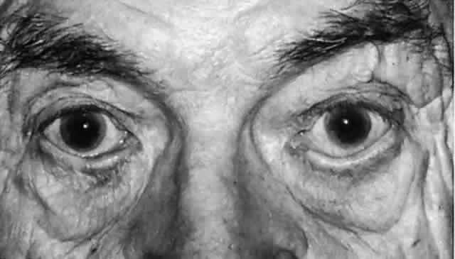 MALPOSITION OR EVERSION The normal position of the punctum is pointing inward toward the lacrimal lake. It cannot be seen by an observer looking directly toward the eyelid. The punctum can be displaced in a congenital anomaly with eyelid syndromes such as blepharophimosis or congenital ectropion. Malposition more commonly is an acquired anomaly in older individuals with eyelid laxity and senile ectropion (Fig. 9). It also may occur after injury or burns with skin shrinkage, which results in turning the punctum outward.