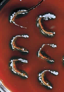 The severity of corneal infection usually depends on the underlying condition of the cornea and the pathogenicity of the infecting organism. Toxins produced by some organisms facilitate infection through cytotoxic destruction of the cell membrane or by inhibiting cellular protein synthesis.3 An understanding of the characteristics and pathogenicity of bacteria commonly known to cause infectious keratitis is helpful in the treatment of these infections. The more common bacteria isolated from bacterial corneal ulcers, their clinical characteristics, and the laboratory techniques used in their identification are presented. |