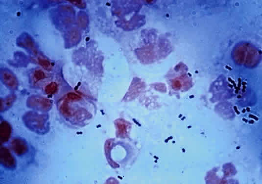 | Numerous microorganisms on the lid margin and in the normal uninfected