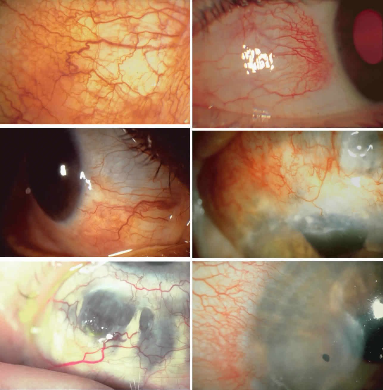 a patient has had scleritis. Corneal changes of a similar type occur in episcleritis (14%), but they are less severe, always peripheral, and never a source of permanent visual defect, whereas those of scleritis can sometimes cause a loss of vision that is severe enough to require corneal grafting. More than one type of corneal involvement may occur in the same patient, and the classification of such involvement is presented in the following list: