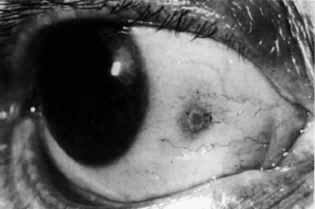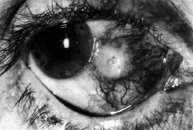 eye. When tumors occur in conjunctiva and involve episclera, they form