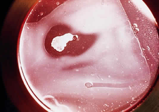 Fig. 1. Digestion of collagen gel surrounding an explant from an ulcerating alkali-burned cornea.