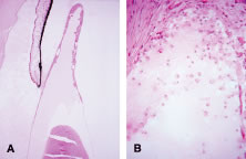 retinal detachment, and, eventually, phthisis bulbi.4 A milder form of phacoanaphylactic uveitis is known to occur following extracapsular cataract extraction, with or without posterior chamber intraocular lens implantation. In these cases the granulomatous inflammation develops at between 1 week and 6 months after the surgical procedure. This form of phacoanaphylaxis is believed to reflect limited immune response to a small amount of lens protein remaining in the ocular cavity.8,9 In some patients a sympathetic response may occur in the opposite eye. Histopathologically, enucleated eyes with severe phacoanaphylactic endophthalmitis show a zonal type of granulomatous inflammation concentrated around the disrupted lens capsule and exposed lens cortex or nucleus5 (Fig. 2). Typically, a zone of polymorphonuclear leukocytes is present around the lens cortex; the cortical fibers show degenerative changes in the form of fragmentation and disintegration. Surrounding the polymorphonuclear leukocytes is a zone of mononuclear cells, which consists primarily of macrophages and epithelioid cells but is admixed with a few scattered multinucleated giant cells. Some of these giant cells show features of foreign body type cells, whereas others exhibit features typical of Langhans' cells (see Fig. 2B). A third zone, made up of lymphocytes, surrounds these epithelioid cells. This lymphocytic zone may also contain fibroblasts or granulation tissue. The surrounding iris, ciliary body, and anterior choroid are usually infiltrated by lymphocytes and plasma cells. This lymphoplasmacytic infiltration is marked in the anterior uvea and tends to be of mild to moderate degree in the posterior uvea. The retina may show some perivascular lymphocytic infiltration. In many cases, extensive iridolenticular adhesions are present (see Fig. 2A), often accompanied by chronic inflammatory cells in the anterior chamber and in angle structures. The endothelial surface of the cornea may contain collections of mononuclear cells. Eyes enucleated during more chronic stages of phacoanaphylactic endophthalmitis may show only a few polymorphonuclear leukocytes around the disrupted lens. However, a zone of granulomatous inflammation can be seen, made up of epithelioid cells admixed with large number of multinucleated giant cells, as can a surrounding zone of lymphocytes and fibroblasts. These eyes may also exhibit fibrosis that encloses the granulomatous inflammatory mass. Such eyes usually show a cyclitic membrane, tractional retinal detachment, osseous metaplasia of the retinal pigment epithelium, and phthisis. ETIOLOGY Even though the precise cause of the initial events that evoke the inflammation in phacoanaphylactic endophthalmitis is unknown, the inflammation is believed to be initiated by an autoimmune process directed at the lens protein. Reports in the past have suggested that lens protein is organ specific and, under normal conditions, is sequestered from the immune system by the lens capsule.10,11 However, in recent years it has been documented that most healthy people, with no demonstrable ocular disease, have anti-lens antibodies,12 and when they do undergo extracapsular cataract surgery, they rarely develop phacoanaphylaxis. Based on these observations it is less likely that phacoanaphylaxis is an immune reaction to the so-called sequestered lens antigen that is released by traumatic or surgical disruption of the lens capsule. Moreover, experimental animal studies have shown that lens proteins are not sequestered solely in the lens capsule and, in addition, immunologically these proteins are not organ specific. Based on experimental animal studies, Marak13 proposed a hypothesis for the pathogenesis of phacoanaphylaxis. According to this theory, development of phacoanaphylactic endophthalmitis is dependent on abrogation of normal tolerance to lens protein. Experimentally, granulomatous inflammation can be induced around surgically disrupted lens in various strains of rats that have been sensitized to lens protein.13 Histopathologically, the enucleated eyes of these animals show features very similar to those observed in human phacoanaphylaxis. Immunologic investigations of such animals demonstrated that the lens-induced uveitis is an antibody-mediated autoimmune disease that develops when normal immune tolerance (T-cell tolerance) is terminated by stimulation of B cells with gram-negative bacterial lipopolysaccharide.13 Based on such experimental studies, it appears that phacoanaphylactic endophthalmitis in humans could be an anti-lens protein antibody-mediated localized immune complex disease that is triggered by traumatic release of lens protein and stimulation of B cells. DIFFERENTIAL DIAGNOSIS The intraocular inflammatory disorders that should be differentiated from phacoanaphylactic endophthalmitis include infectious (bacterial or fungal) endophthalmitis, phacogenic nongranulomatous uveitis, phacolytic glaucoma, localized endophthalmitis, and sympathetic ophthalmia. Exogenous bacterial endophthalmitis following a penetrating wound to the globe or following cataract extraction may present with signs of severe intraocular inflammation and hypopyon. However, unlike phacoanaphylactic endophthalmitis, it is unusual to observe large keratic precipitates in bacterial endophthalmitis. Some cases of bacterial or fungal endophthalmitis may be difficult to differentiate from phacoanaphylaxis. In such cases a definitive diagnosis can be established by histologic examination and by culture studies of the intraocular inflammatory exudate. Exogenous fungal endophthalmitis may present with several clinical features that are typical of low-grade phacoanaphylactic endophthalmitis. These include delayed onset of ocular inflammation, hypopyon and inflammatory exudate in the anterior chamber and vitreous cavity, and puffball vitreous opacities. Furthermore, some of these patients may exhibit keratic precipitates similar to those noted i