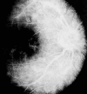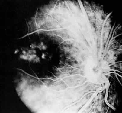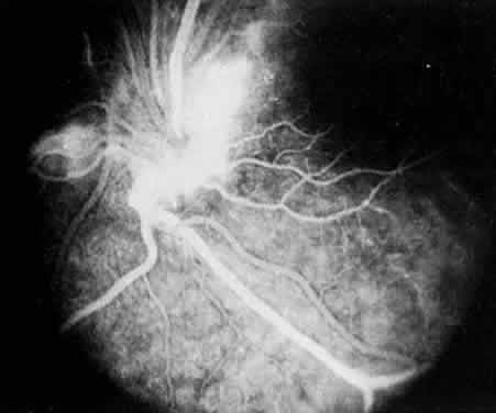 FLUORESCEIN ANGIOGRAPHY AND VITREOUS FLUOROPHOTOMETRY In pars planitis, fluorescein angiography shows diffuse leakage from the retinal venules and capillaries, without any predilection for the inferior retinal vasculature (Figs. 5 and 6).28 Similarly, vitreous fluorophotometry in patients with pars planitis also shows no predilection for vascular leakage in the inferior peripheral retina.29 These findings suggest that snowbank is most likely a sequela from ocular inflammation, that inferior peripheral retina periphery is not the source of inflammation in pars planitis, and that pars planitis is not a localized inflammatory response of the inferior retina.