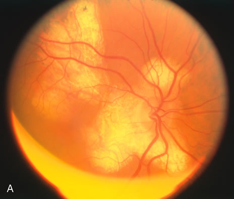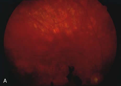 there also is no definite confirmatory determination of this. The reason the diseases are considered infectious is because they appear to cause acute visual loss and some are associated with white blood cells in the vitreous or a retinal vasculitis. In addition, the lesions may crop up and have an acute, chronic, or semiacute course similar to systemic infectious diseases. Many of these entities affect persons in the third to fifth decade of life, which is when many of the immunologic reactions occur elsewhere. It may be that there is an initial infectious agent that in a host with certain predisposing characteristics triggers an immunologic reaction, or it could be that the agent stays indefinitely in the host causing a host-induced reaction. On physical examination, the patients may have iritis, vitreitis, or retinitis, although in many of the choroiditic entities they may not manifest these findings. Because the choroid or the retinal pigment epithelium is affected, they may show a serous retinal detachment that presents as a blister of fluid that is loculated or as an exudative retinal detachment with shifting subretinal fluid. Acutely there may be a gray-yellow plaque of varying size. It may then resolve with only mild almost imperceptible pigmentary changes or there can be dense white chorioretinal scarring. Because the photoreceptor/retinal pigment epithelial complex is affected, many note photopsias or colored swirling lights and also they may have visual field defects. It is important to determine carefully that the disease is truly an inflammatory disease and not a known infectious or neoplastic disease. Infectious choroiditides have to be considered in all circumstances of inflammatory choroiditis. A specific test for Treponema pallidum, for instance, the fluorescent treponema antibody-absorbed (FTA-ABS) test or the microhemaglutination-treponema pallidum test (MHA-TP) should be performed to determine if the choroiditis is caused by syphilis. Other diseases, including tuberculosis, cat-scratch disease, coccidioidomycosis, West Nile encephalitis, and nocardiosis among others need to be considered. In addition, certain noninflammatory diseases, for instance, central serous chorioretinopathy may have an acute time course similar to that of an inflammatory condition and eclampsia, thrombotic thrombocytopenia purpura, and disseminated intravascular coagulation may also mimic an acute inflammatory choroiditis. |