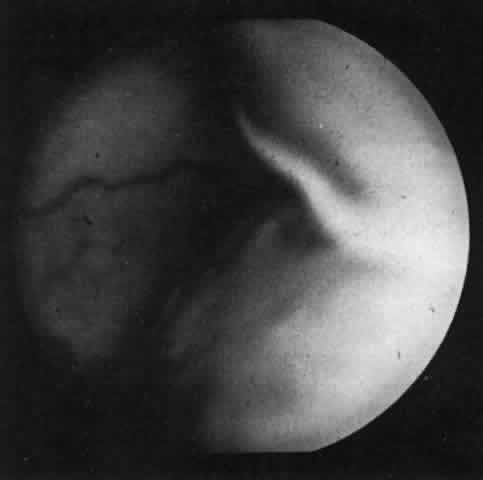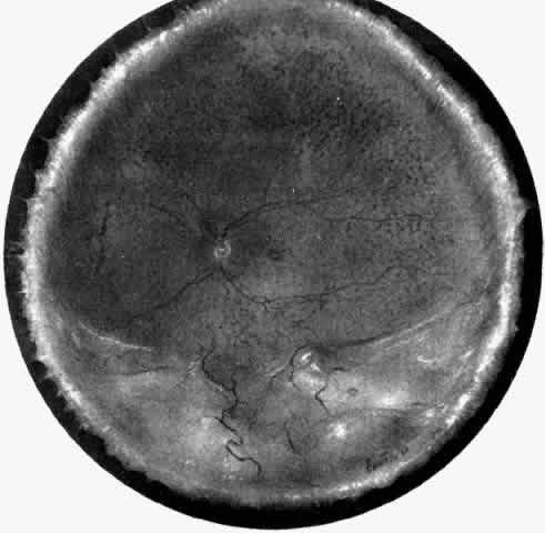 a retinal detachment to a hasty observer; however, darkness of the uvea, lack