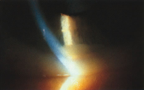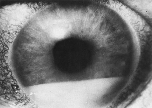 entities can mimic anterior, posterior, or diffuse uveitis. Medications can alter the normal clarity of the anterior chamber and produce a pattern that may be mistaken for an anterior uveitis. For example, patients, especially those with a dark iris on dilation with phenylephrine hydrochloride, may have a transient appearance of anterior chamber pigmented cells that may last for up to 24 hours. Administering drops before performing an anterior segment examination can impair the clinician's ability to grade aqueous cell and flare.50,51 Similarly, occasionally Krukenberg spindles with pigment dispersion may also mimic uveitis. Anterior uveitis has developed in several acquired immunodeficiency syndrome patients receiving rifabutin therapy.52 A number of adult cardiovascular diseases can produce ophthalmic manifestations that simulate uveitis. In severe hypertension, retinal detachment, small choroidal vascular insults, cotton wool spots, and hemorrhages may occur, simulating posterior uveitis (Fig. 23). In patients with carotid artery disease, anterior segment ischemia similar to mild anterior uveitis may be observed. This pattern may also occur after either extensive ocular irradiation or disinsertion of more than two extraocular muscles during retinal or strabismus surgery.