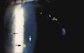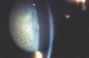 Vitreous biopsy and anterior chamber paracentesis may show the presence of polymorphonuclear leukocytes, histiocytes, and plasma cells surrounding amorphous lens material.141 Concomitant inflammation of the retina and choroid has been reported in 76% and 51% of cases, respectively.126 Diagnosis The diagnosis of phacoantigenic uveitis can be suspected or made presumptively in cases of postoperative or posttraumatic granulomatous inflammation with concomitant disruption of the lens capsule. A definitive diagnosis of phacoantigenic uveitis requires vitreal biopsy or anterior chamber paracentesis, which may yield macrophages that show engorged cytoplasm, presumably filled with lens material. Of 144 histopathologically reviewed cases of phacoantigenic uveitis that Marak141 reported, only six (5%) were correctly diagnosed clinically. Since clinical diagnosis of phacoantigenic uveitis is difficult, in suspected cases anterior chamber fine needle biopsy and its cytopathology is reported to be a valuable adjunct to clinical examination. Differential Diagnosis Phacoantigenic uveitis should be differentiated from other forms of postoperative uveitides, including sympathetic ophthalmia, delayed infectious endophthalmitis, toxic reactions due to foreign material introduced at surgery, and those associated with intraocular lens (such as mechanical disturbances, manufacturing problems, etc.).138 Sympathetic ophthalmia (SO) is, by definition, bilateral and, in one-third of cases, characterized by the presence of Dalen-Fuchs nodules, whereas phacoantigenic uveitis is usually unilateral and is not characterized by fundus lesions. Although phacoantigenic uveitis may be bilateral at times, the inflammation is usually simultaneously active in sympathetic ophthalmia. Choroidal thickening is observed in SO on ultrasound, and there is minimal choroidal inflammation in phacoantigenic uveitis. Sympathetic ophthalmia can, however, coexist with phacoantigenic uveitis. Delayed infectious endophthalmitis after intraocular surgery and trauma may mimic phacoantigenic uveitis. One of the primary examples is Propionibacterium acnes endophthalmitis, which usually presents as chronic granulomatous uveitis and may be difficult to distinguish from phacoantigenic uveitis. Like phacoantigenic uveitis, P. acnes endophthalmitis typically occurs after uneventful extracapsular cataract extraction and is characterized by mutton-fat keratic precipitates, anterior chamber reaction, and vitreous cells. The presence of plaque-like material on the capsular bag may be a helpful feature in distinguishing P. acnes endophthalmitis from phacoantigenic uveitis (Fig. 4). The diagnosis of P. acnes endophthalmitis is usually confirmed by positive cultures of the aqueous humor or the vitreous. Like sympathetic ophthalmia, P. acnes endophthalmitis may be associated with phacoantigenic uveitis.142 Other causes of delayed infectious endophthalmitis include coagulase-negative Staphylococcus and corynebacterium.143–146 Various fungi, particularly Candida species, can produce a similar picture.143,144,146,147 In cases of phacoantigenic uveitis with elevated intraocular pressure, phacolytic glaucomas should be considered in the differential diagnosis. In phacolytic glaucoma, the lens is usually hypermature and the elevation of intraocular pressure is the result of blockage of trabecular meshwork by macrophages with ingested lens material.148 The treatment of phacolytic glaucoma is removal of the cataract. Pathogenesis The exact pathogenesis of phacoantigenic uveitis is unknown. It has been suggested for years that phacoantigenic uveitis is an immune rejection of a sequestered foreign material that is released as a result of lens injury.149 However, embryonic lens material is surrounded by the vascular plexus-tunica vasculosa lentis, and lens tissue is well recognized by the immune system. The large number of extracapsular cataract extractions performed annually and the rarity of phacoantigenic uveitis also do not favor this hypothesis. An alternative hypothesis suggests that phacoantigenic uveitis represents a loss of tolerance of the immune system to lens antigens. T-cell tolerance is normally maintained by small amounts of circulating lens protein. This tolerance may be altered by trauma and infection.138 Genetic predisposition may also play a role. Phacoantigenic uveitis seems to be an immune complex disease (type III hypersensitivity reaction). The amount of inflammation in phacoantigenic uveitis does not depend upon the amount of lens material that remains in the eye.150 The degree of inflammation has, however, been correlated with antibody titer.151 De novo production of antilens antibodies has been reported after extracapsular cataract extraction, and these antilens antibodies can cross-react with uveal antigen.151 In experimental phacoantigenic uveitis induced in rats, Rao et al.152 showed that oxygen radicals, such as hydrogen peroxide and hydroxyl radicals, play an important role. Treatment The mainstay of treatment of phacoantigenic uveitis is removal of all the remnant lens material (including cortical material and nuclear fragments) in the eye. Removal of the capsular remnants and the intraocular lens is also recommended.122,124 Use of chymotrypsin, which breaks down zonules, may facilitate the complete removal of the residual capsular remnant. Topical, periocular, and systemic corticosteroids may be used as adjuncts to surgical intervention to minimize the intraocular inflammation. Antiglaucomatous medications may be necessary in cases of phacoantigenic uveitis with concomitant elevation of intraocular pressure. Some mild cases of suspected phacoantigenic uveitis occurring after cataract surgery seem to go into remission spontaneously after several weeks. It is possible that exposed antigen is eliminated or sequestered by the body such that inflammation stops. In many of these cases, retained lens material is still visible on slit lamp e